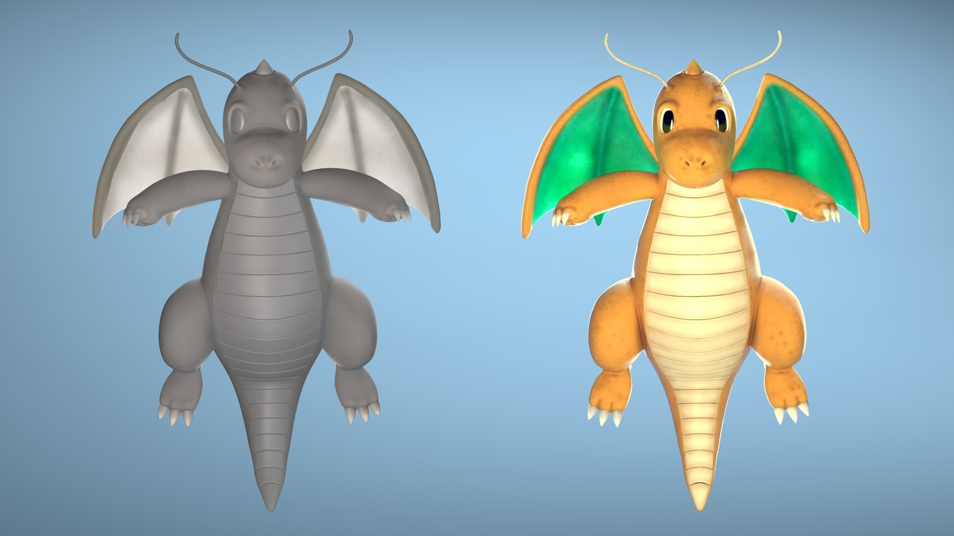 Dragonite is one of the most iconic characters in the Pokémon universe, and recreating it in 3D was the perfect challenge to test a professional pipeline that combines art, technique, and cutting-edge tools. The goal of this project was to achieve a faithful version of the character while giving it a realistic finish that would enhance its on-screen presence.